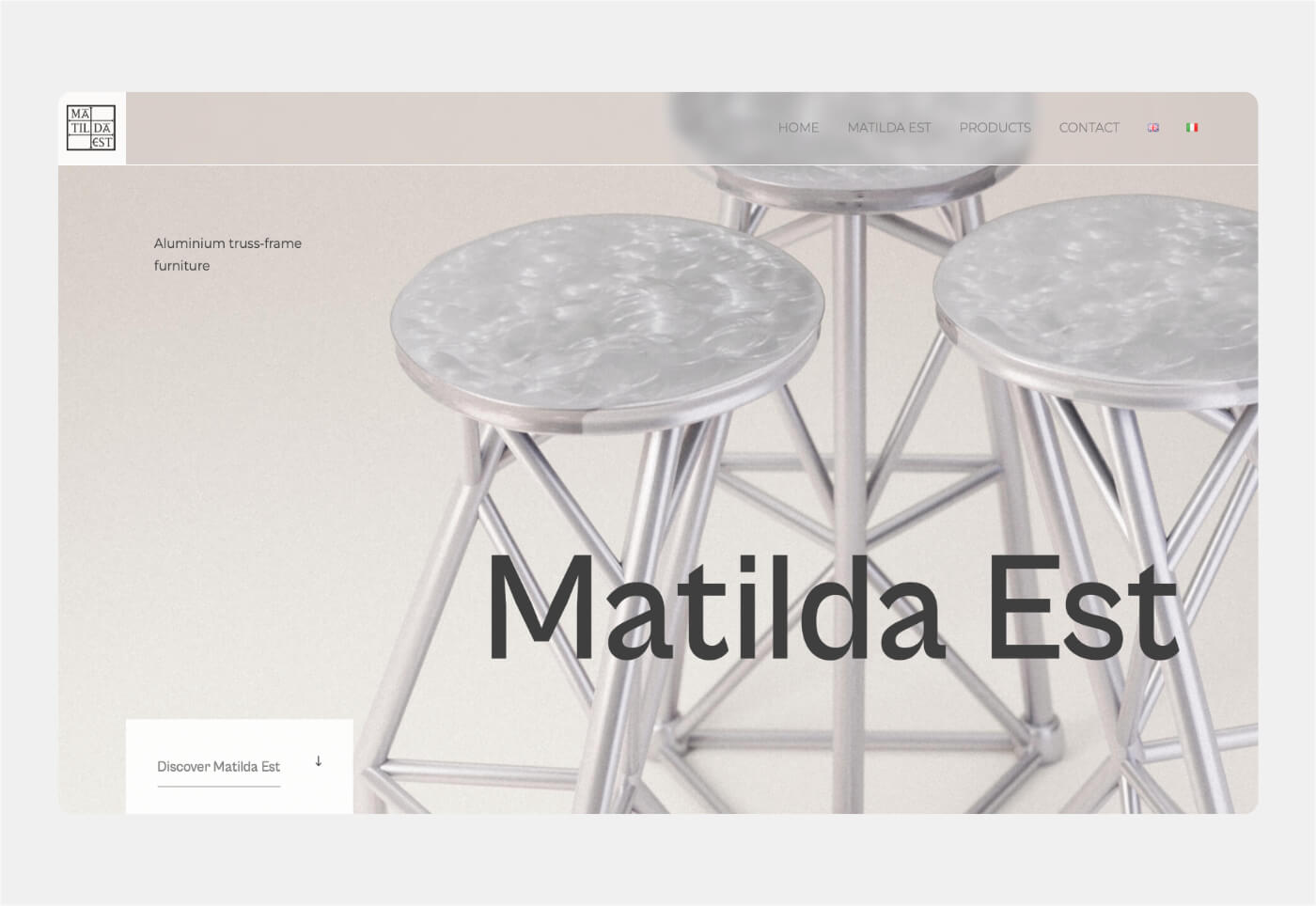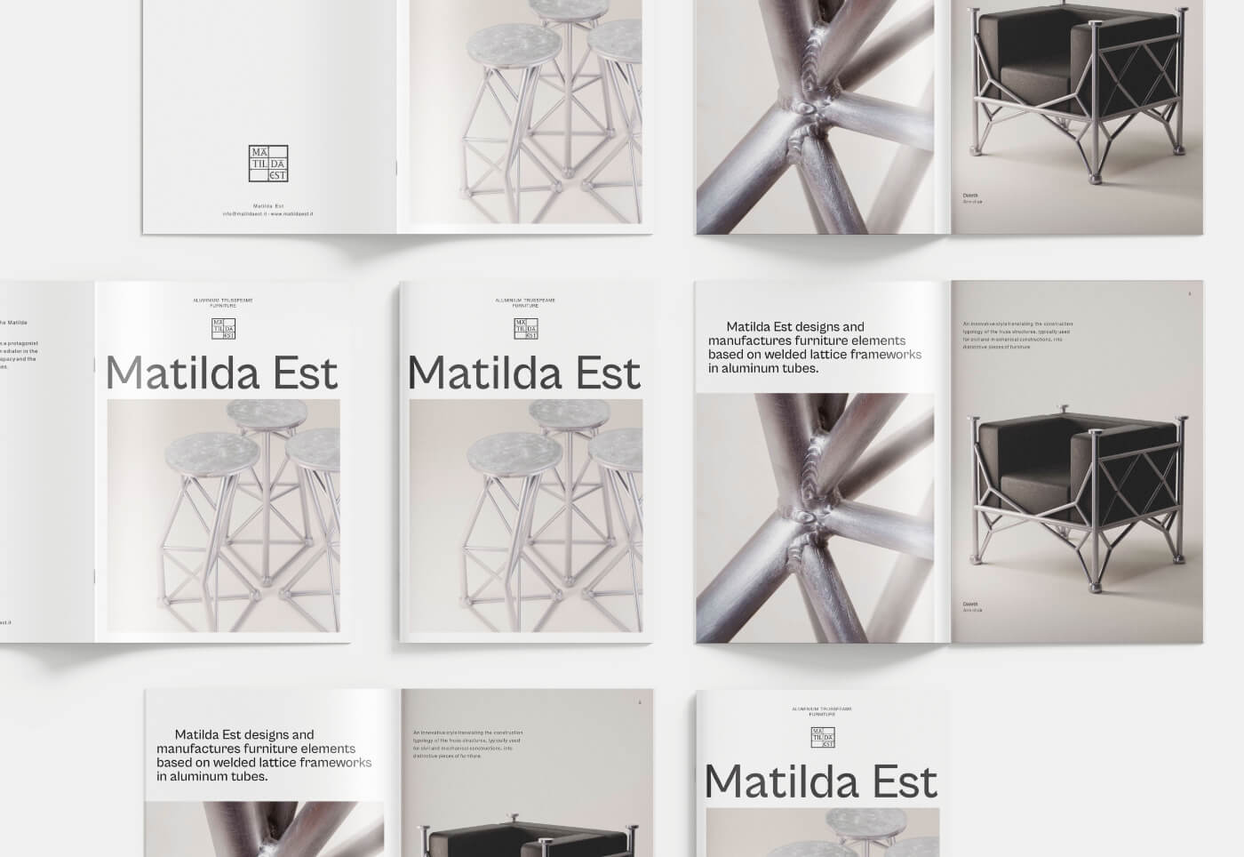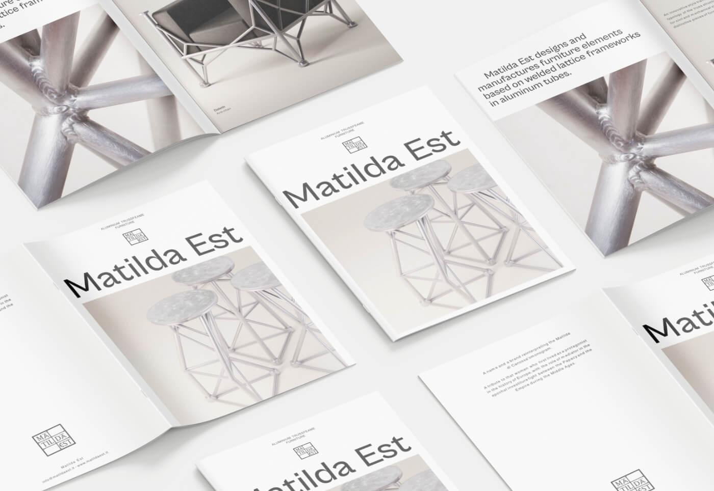 Per Matilda Est, brand di design che realizza arredi in alluminio dalle strutture reticolari, abbiamo creato un sito internet e una brochure per raccontarne la visione creativa.