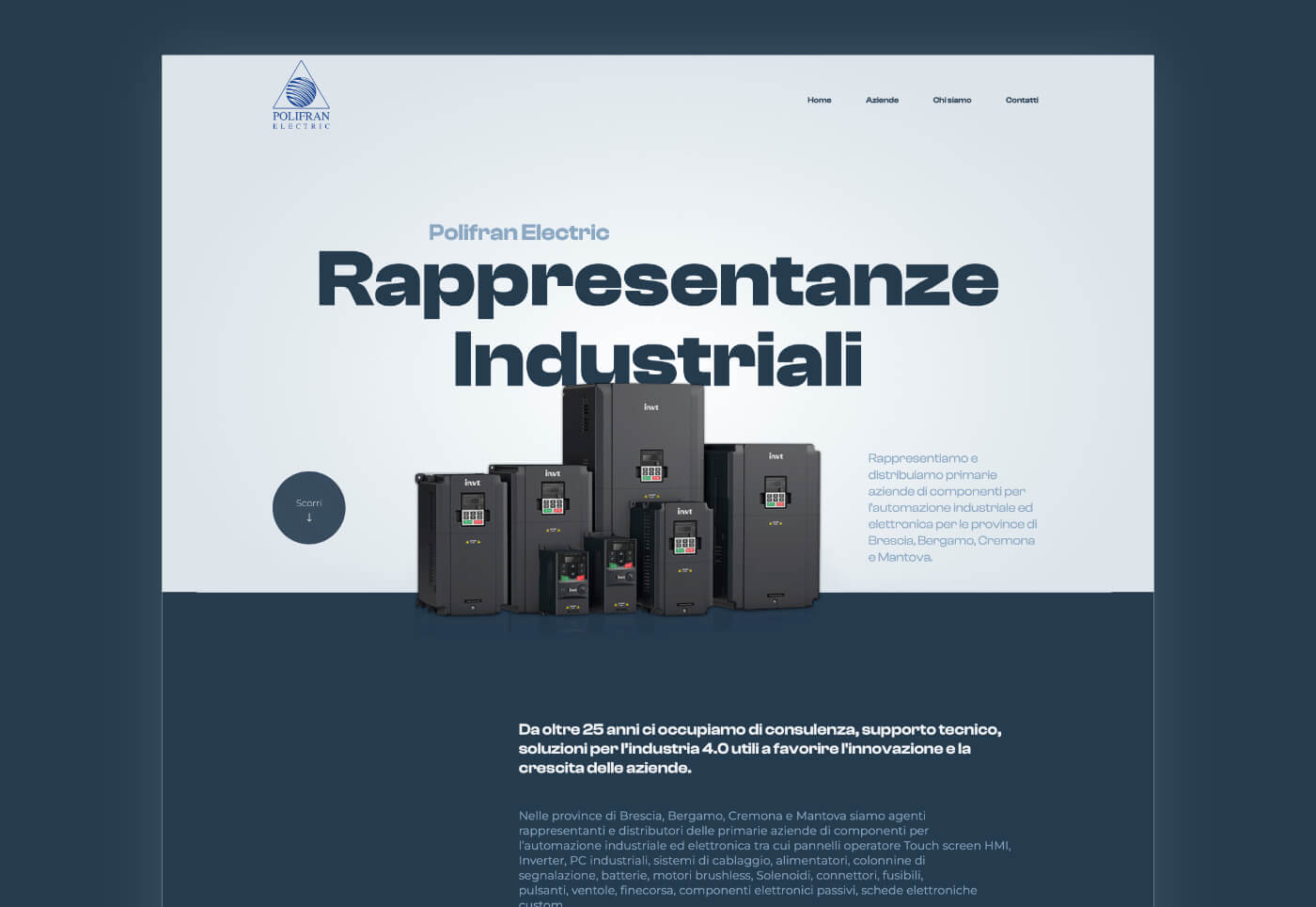 Il sito comunica professionalità e solidità attraverso un’immagine coordinata sobria ma tecnica. L’uso di elementi grafici ordinati e linguaggio settoriale preciso trasmette competenza e affidabilità, coerentemente con la natura consulenziale e distributiva di Polifran Electric.