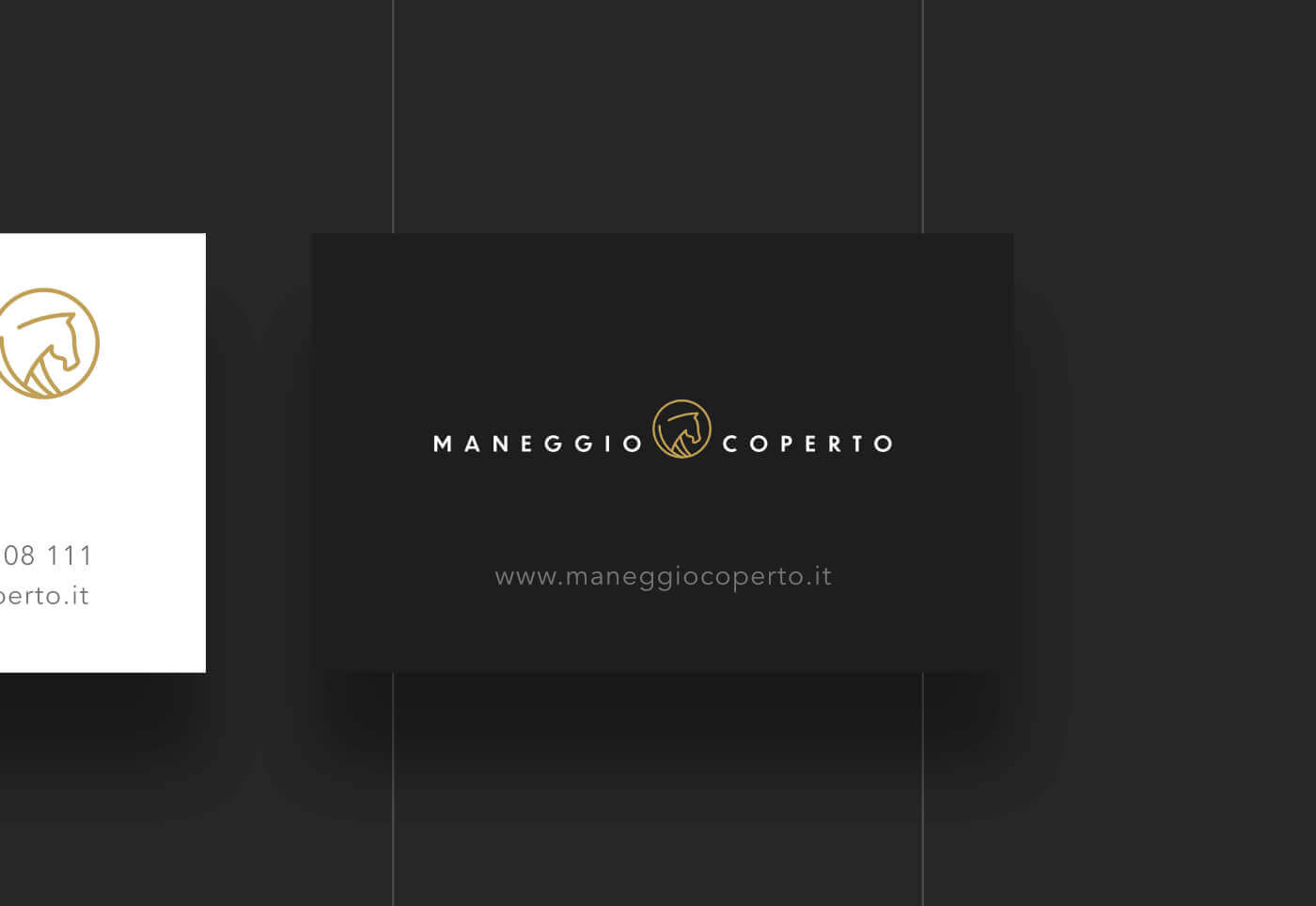 L'azienda progetta e costruisce coperture per maneggi destinate alla creazione di spazi coperti nei quali vivere la passione per i cavalli durante tutti i mesi dell'anno. Il logotipo realizzato per Maneggio Coperto, elegante ed essenziale, è caratterizzato dall'illustrazione raffigurante la vista laterale di una testa di cavallo. Come colori si è optato per una base bianca/nera per il lettering e un oro per l'illustrazione: un'abbinata che dona valore e ricercatezza, trasmettendo da subito l'alta qualità e sicurezza delle coperture proposte.
